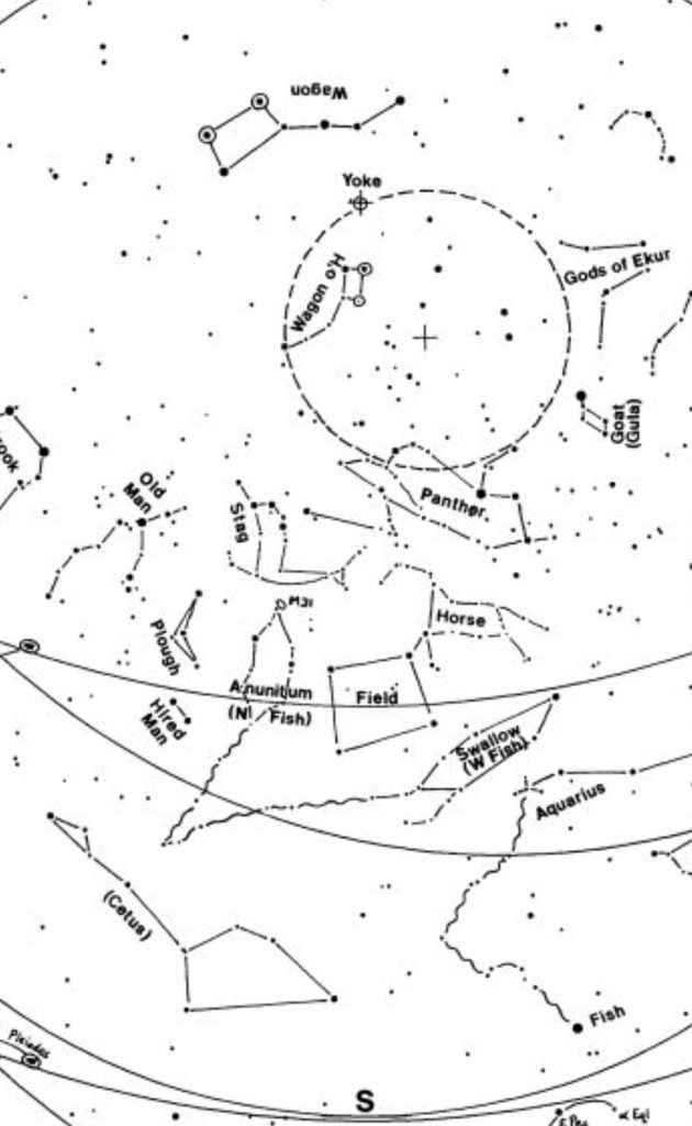 These are Canis Major and Canis Minor. As the stars turn they guard the “entrance to the underworld”