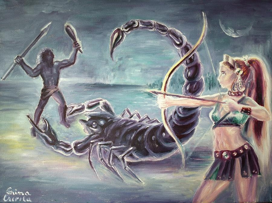 “In Greek Mythology, it comes from the story of Orion. He was the son of Poseidon and Euryale. He and Artemis were hunting partners. Artemis’s twin brother Apollo, was jealous of Orion, so he sent a giant scorpion which then stung and killed Orion. Artemis then Avenged Orion by killing the beast but in reward, for a deed done for Apollo, Apollo ascended it to the stars to become the constellation Scorpio.” Source: https://greek-myth.fandom.com/wiki/Scorpio#:~:text=Scorpio%2C%20in%20Greek%20Mythology%2C%20comes,then%20stung%20and%20killed%20Orion.