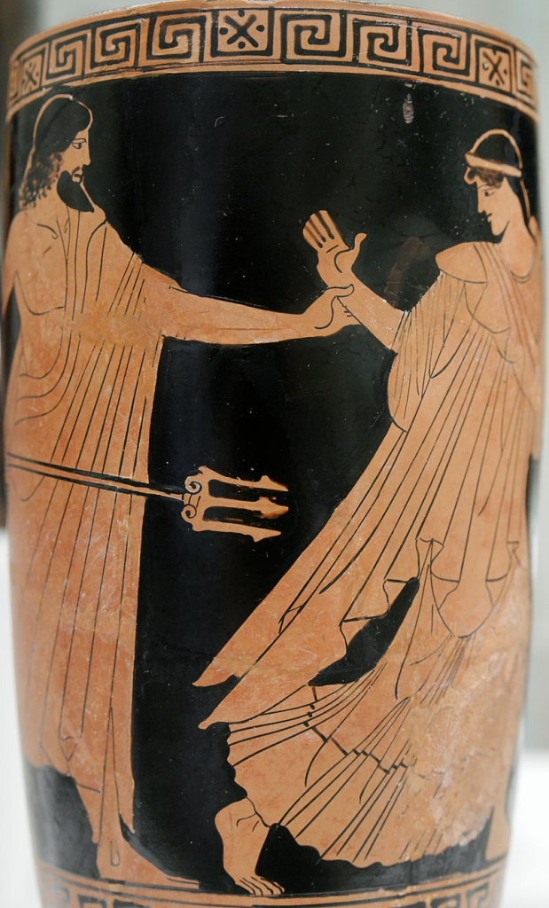 - The presence of Poseidon, advancing the virgin, who he rapes.