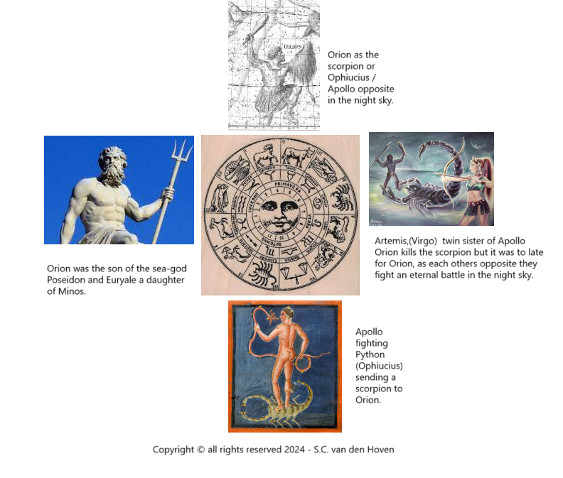 Above is just the story of Medusa. The story of Appolo, orion as son of Poseidon and Artemis with the scorpion can be told in a similar matter.