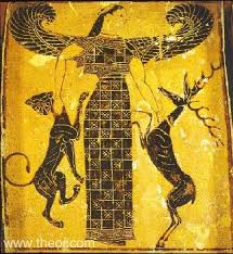 GREECE: POTNIA THERON The Mistress of the Wild Animals. The central painted panel on an amphora from Thebes, Greece. Image: Image number GCL3391181 Source: https://www.bridgemanimages.com/en/noartistknown/greece-potnia-theron-the-mistress-of-the-wild-animals-the-central-painted-panel-on-an-amphora-from/nomedium/asset/3391181