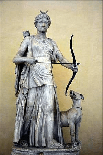 It complicated due to the fact that there are multiple stories based in the same circular zodiac, whilst similar, they have slightly different roles at time which overlap. On the statue of Artemis in the Vatican, note the moon sickle on her head. She is also accompanied by a dog and not by her usual deer. That “hunting dog”, could be a nudge to Cerberus.