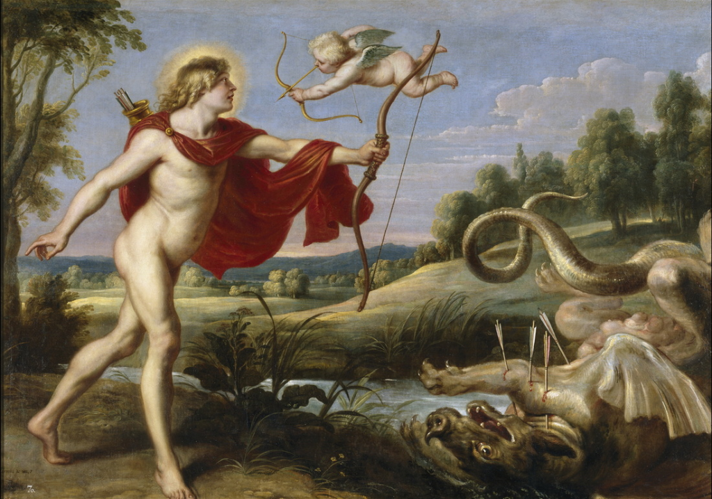 Apollo is the halfbrother who kills the other one. Because they are zodiac opposites. Ophiucius and Hercules. In my view this is also the origin of the cain vs able story in the bible. The vase illustrates this celestial chase, ith apollo’s atributes of the bow and arrow, tools of hunting but also of war. https://en.wikipedia.org/wiki/Apollo#/media/File:Herakles_tripod_Louvre_F341.jpg