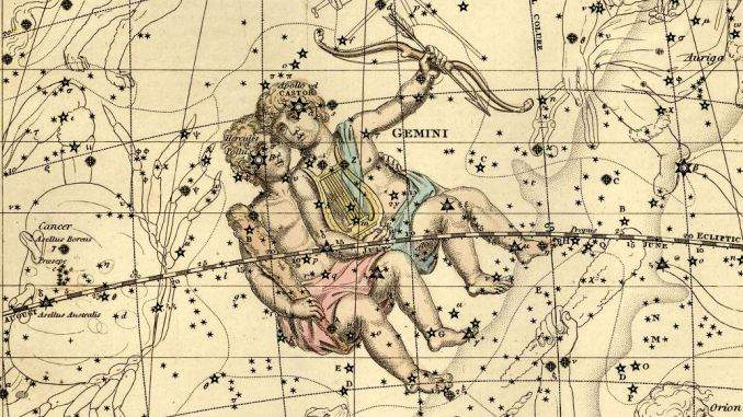They where not Gemini / twins, so to depict Gemini as Orion and Hercules is factually incorrect in relation to Mythology, but I understand why it was done. They were not twins but half-brothers who occupied the extremities next to Leo as the sungod. They where the sons of the sungod, the Dioscuri or Ashvinai.